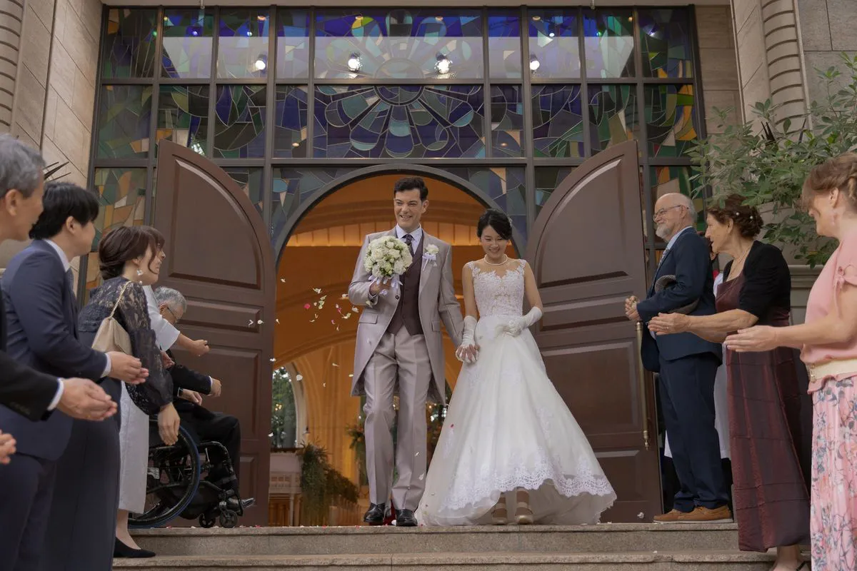 国際結婚で遠方からの家族も多いため、フォーマルな形式ではなく「フレンドリー」をテーマにした和やかな結婚式を目指しました。自然光と緑が溢れるアットホームな式場を選び、白を基調とした装花で明るい空間にこだわっています。 スマ婚は少人数でも利用でき、持ち込みOKな点が魅力でした。ウェディングケーキを無くし、ペーパーアイテムを手作りして節約しつつ、こだわりのドレスや憧れの指輪を選ぶなどメリハリをつけています。 当日はナチュラルな雰囲気の中、ゲストとのびのび過ごせました。特に、長く付き合った日々を振り返るビデオ演出には深く感動し、最高の特別な一日になりました。