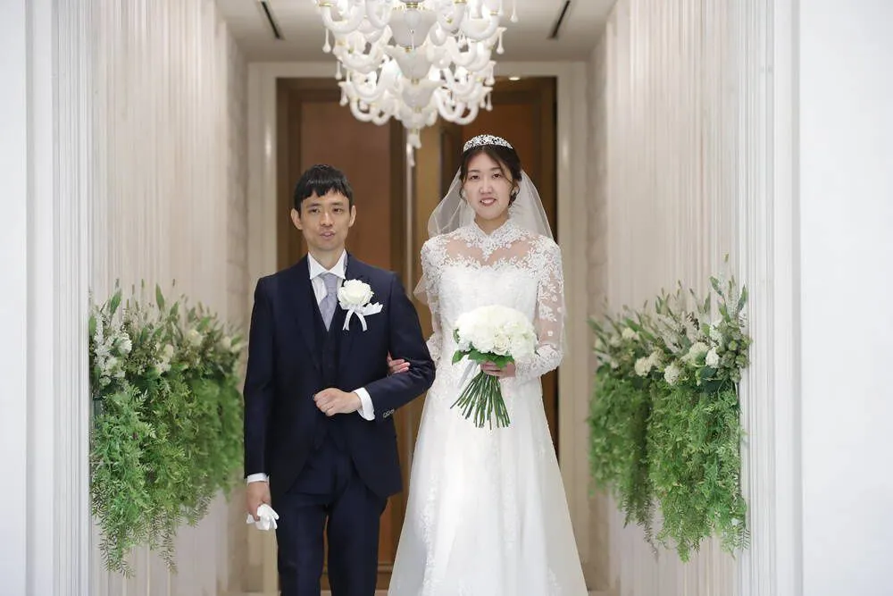「上質で落ち着いた雰囲気」をテーマに、サービスの質が高いリーガロイヤルホテル東京を選びました。挙式は格式ある日枝神社で神前式を行い、厳かな時間を過ごせました。 今回はマタニティウェディングでしたが、お腹が目立たずデザインも素敵なドレスにこだわりました。スマ婚を利用したことで、引出物の外部依頼などで費用を抑えつつ、料理はグレードアップしてゲストに喜んでもらえました。 装花は白と緑を基調に上品にまとめ、サプライズでの妊娠報告も温かく祝福されました。親身なプランナーさんのサポートのおかげで、コストを抑えながらも質の高い理想の式が叶いました。