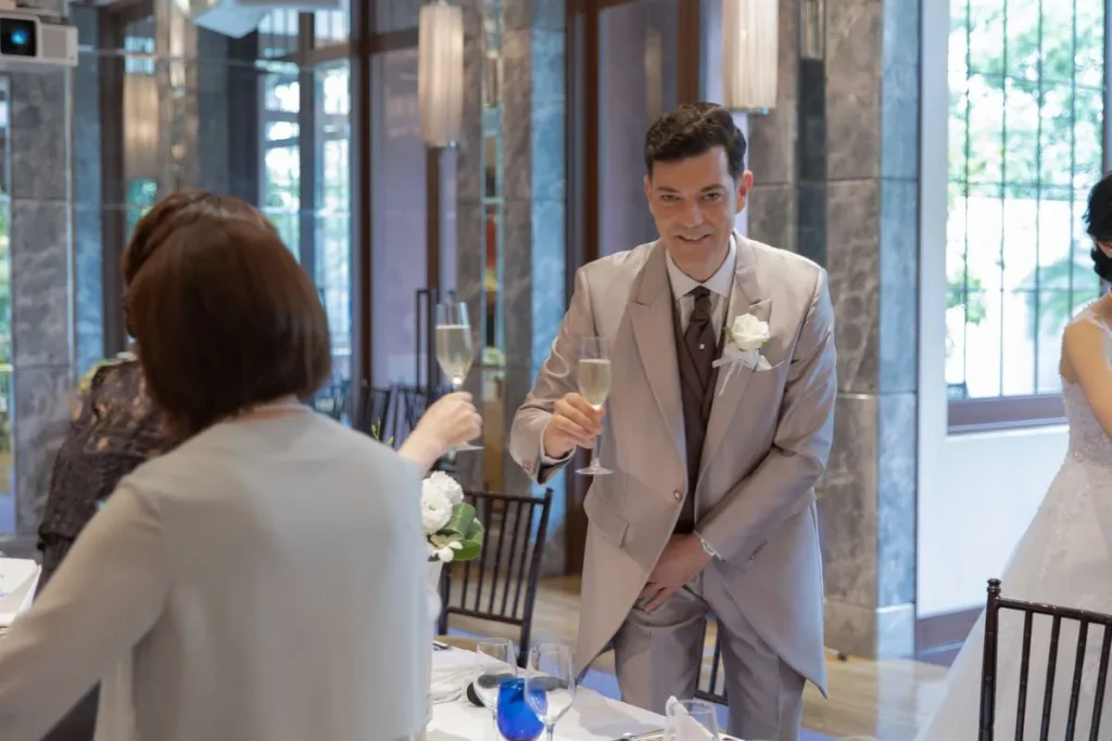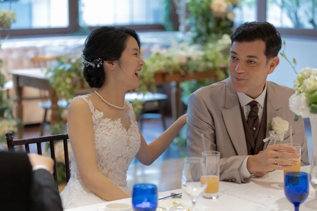 結婚式のコンセプトは「フレンドリー」です。国際結婚のため家族がなかなか会えず、遠いところから参加いただくので、日本のフォーマルな雰囲気よりも和気あいあいとできる雰囲気作りをしました。