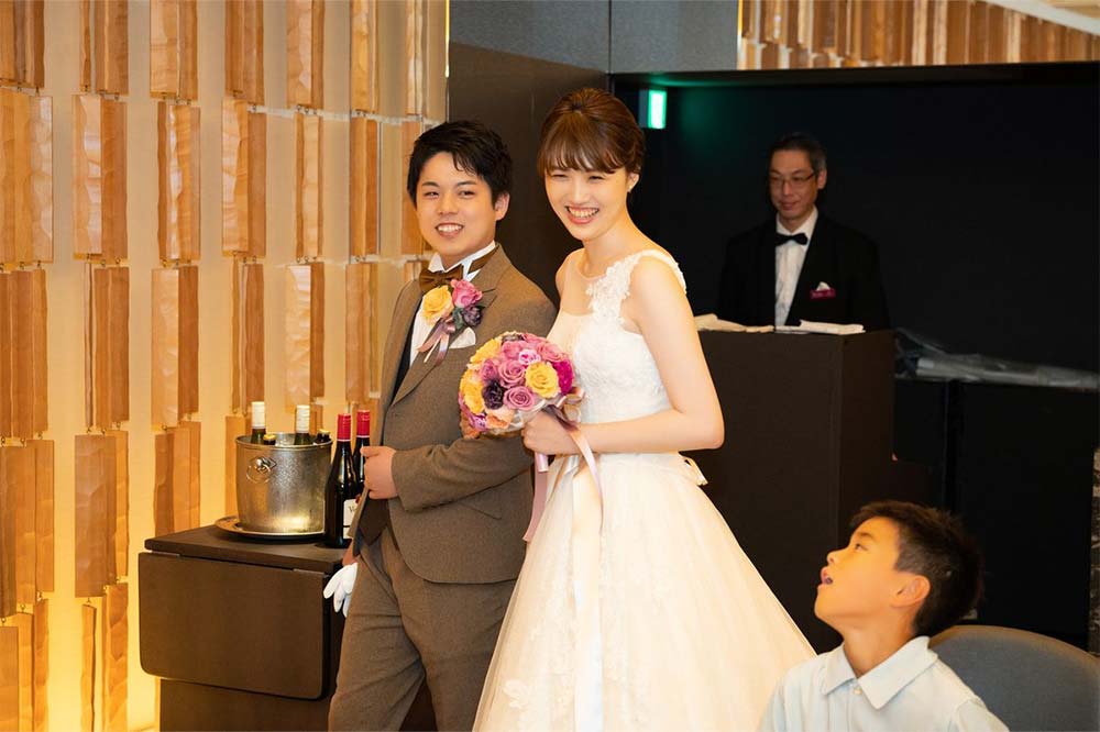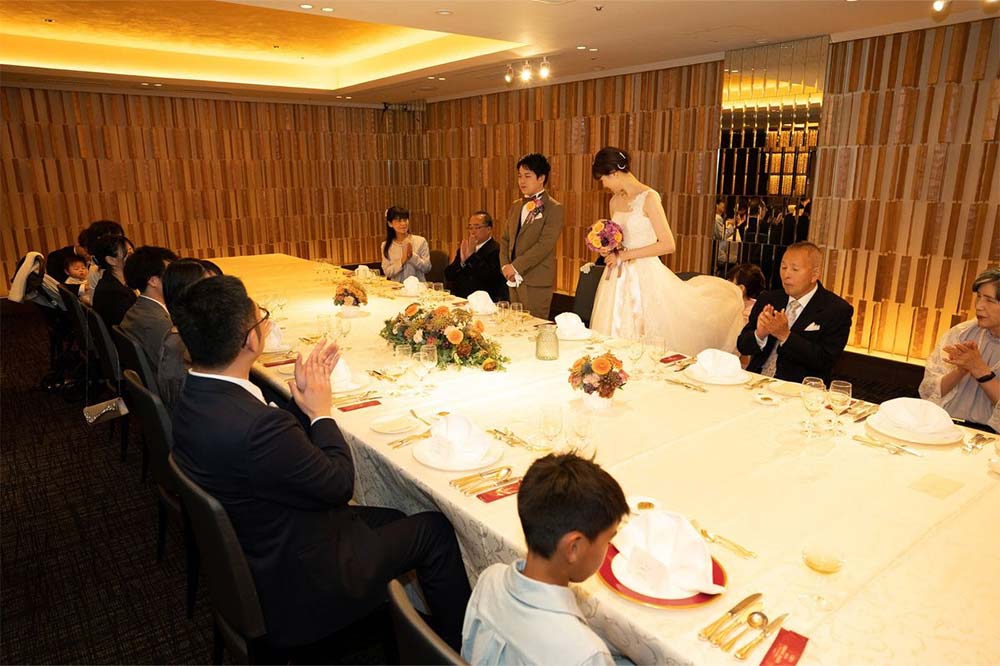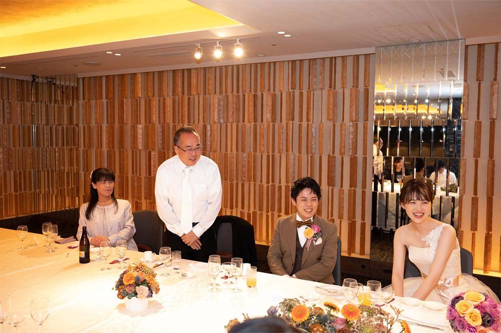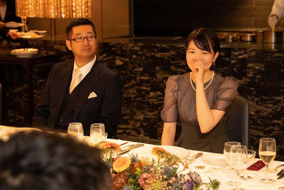 私たちふたりがお互いにしっくりくるものを選んだのがこだわりです。全体をシンプルにまとめたかったので、披露宴ではなく、食事会にしました。せっかくの機会なので、みんなで美味しいものを食べたいと思い、和食と洋食でメニューを比較し、夫と話し合って洋食を選びました。テーブルの近くでお肉を焼いてくれたので、参加した子供たちも興味を持って楽しそうに見ていて良かったです。