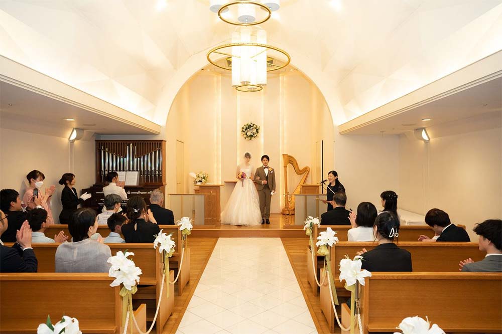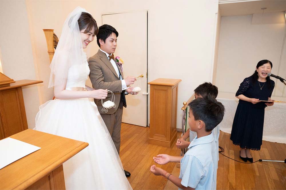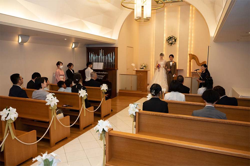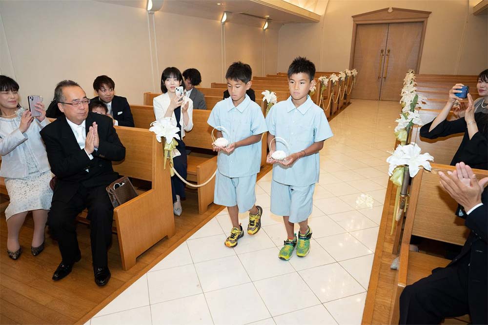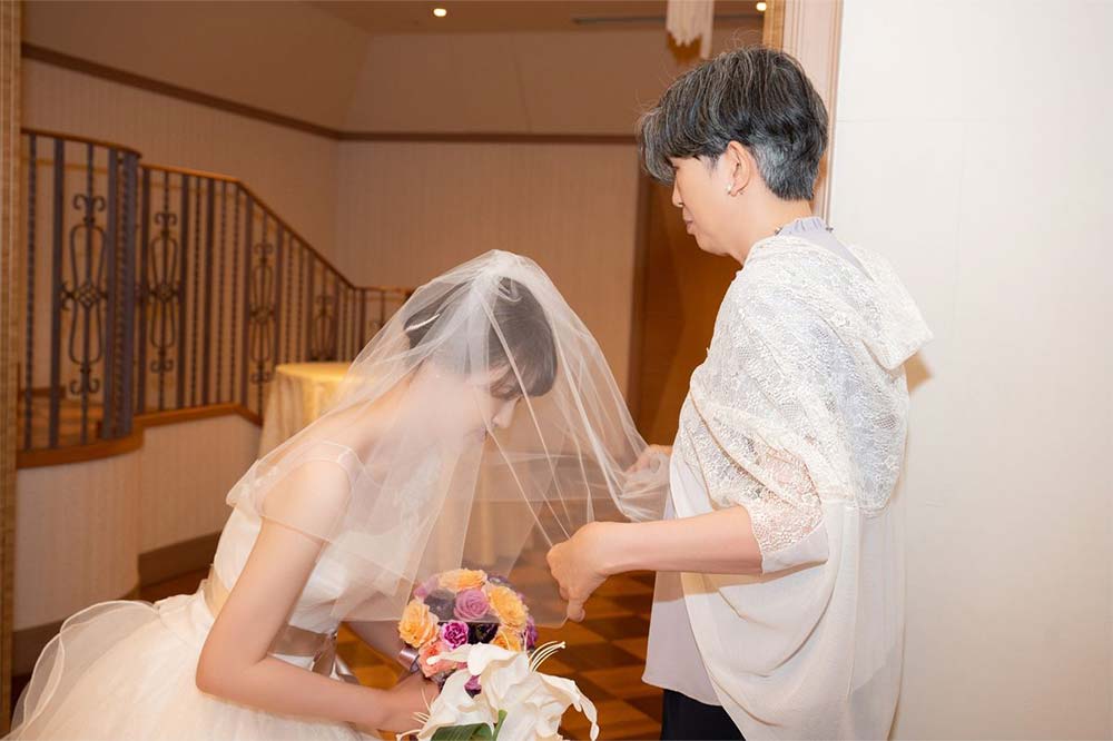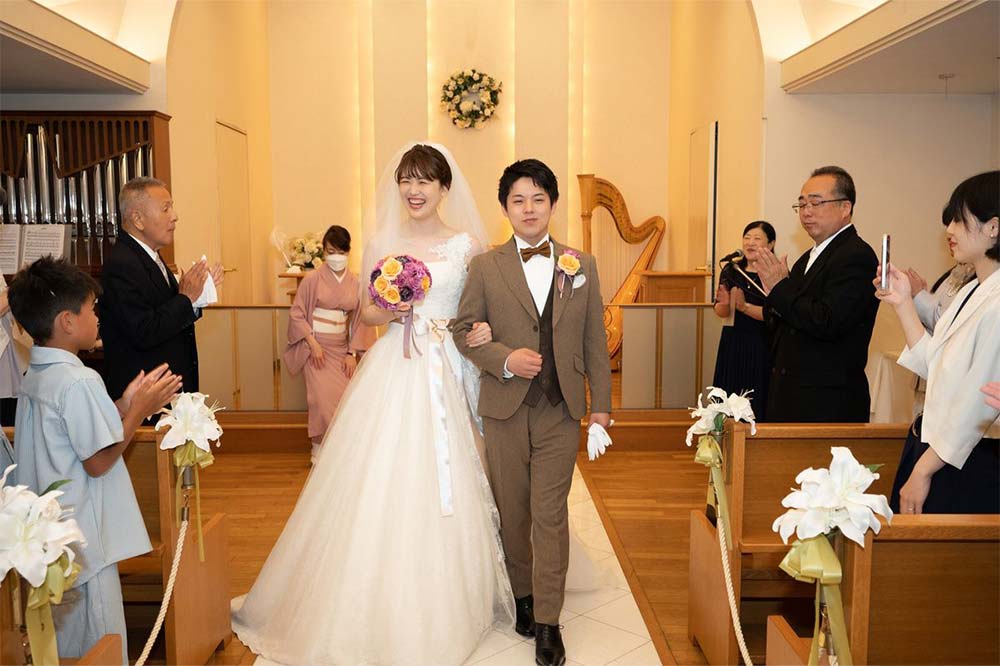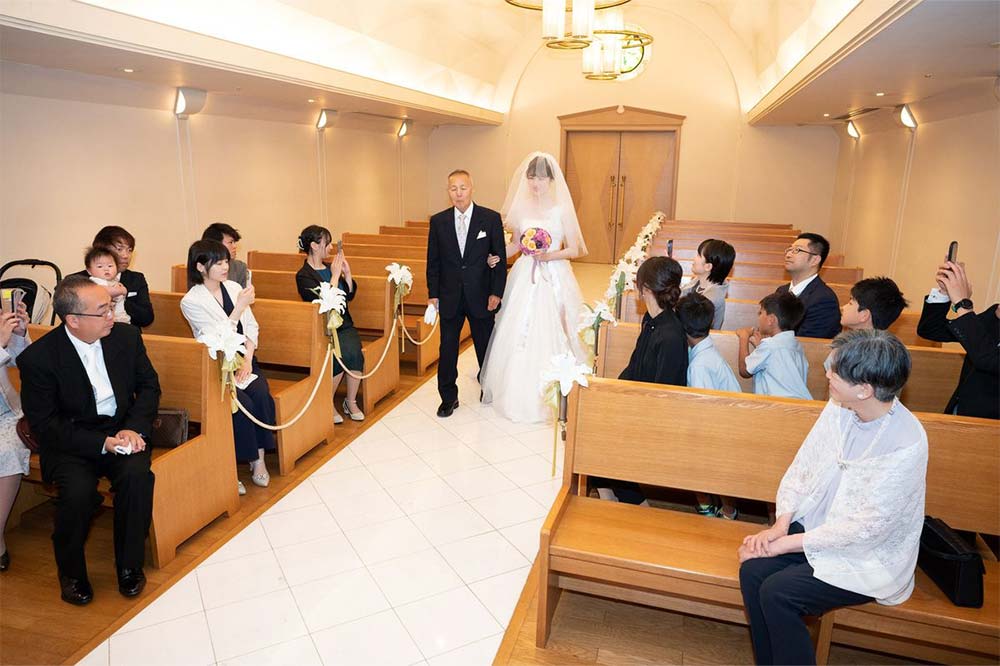 当日は、ドキドキよりも楽しさや、久しぶりに家族に会えた嬉しさが大きかったです。スタッフさんたちがとにかく丁寧に優しく手引きしてくださったので、みんなで笑いながらの挙式になりました。その中でも、お義父さまが涙を流すシーンもあり、結婚式は良いものだなと感じました。