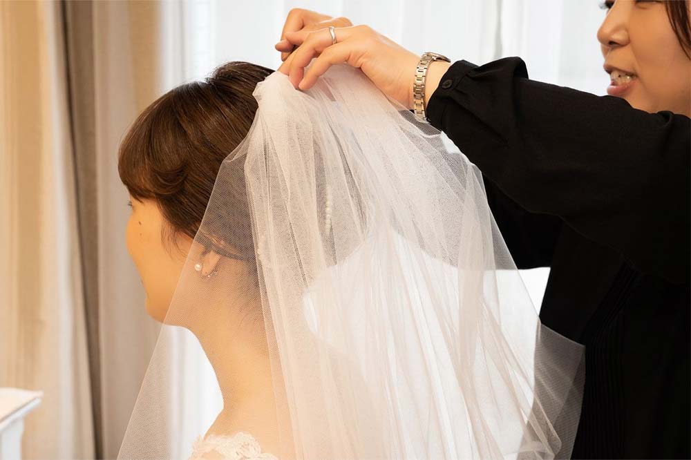 衣装選びでは、何着も試着した上、友人にもアドバイスをもらいながら自分に一番合うものを選びました。ドレスの雰囲気に合うよう、普段とは違ったヘアスタイルにしてもらい、メイクも大人っぽくまとめています。
