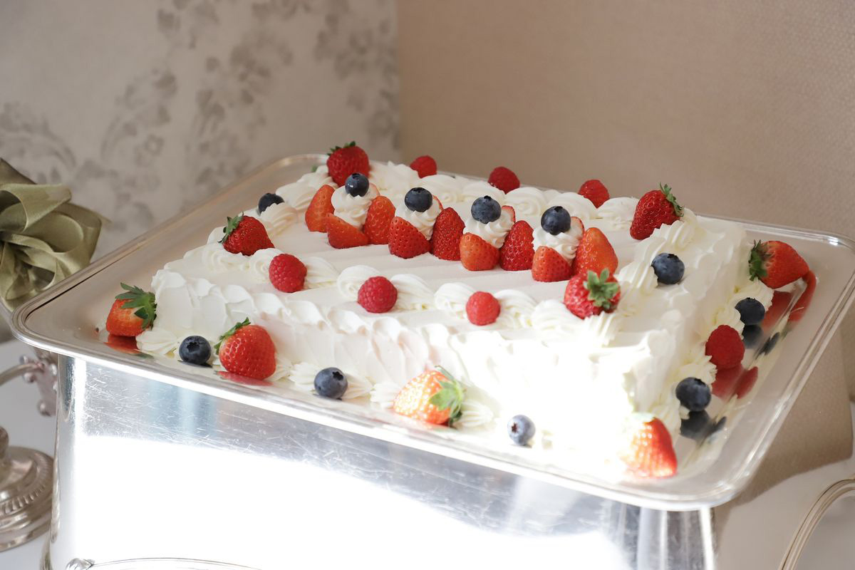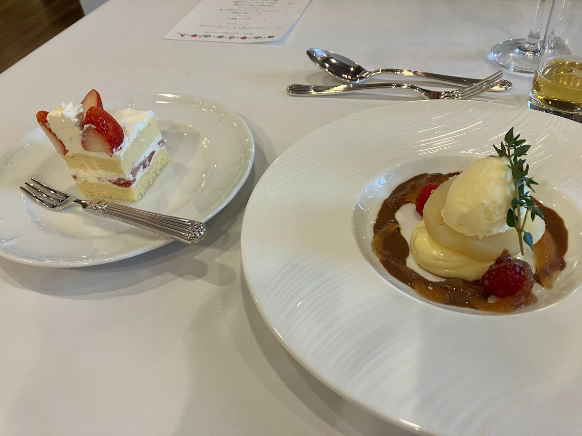 お料理は、3ランクある中の真ん中のコースにしました。見本の写真を見比べて、彩りが綺麗なものを選んだのがこだわりです。特にデザートの彩りで差があったと思います。