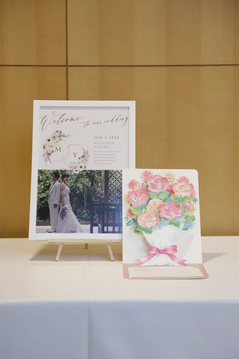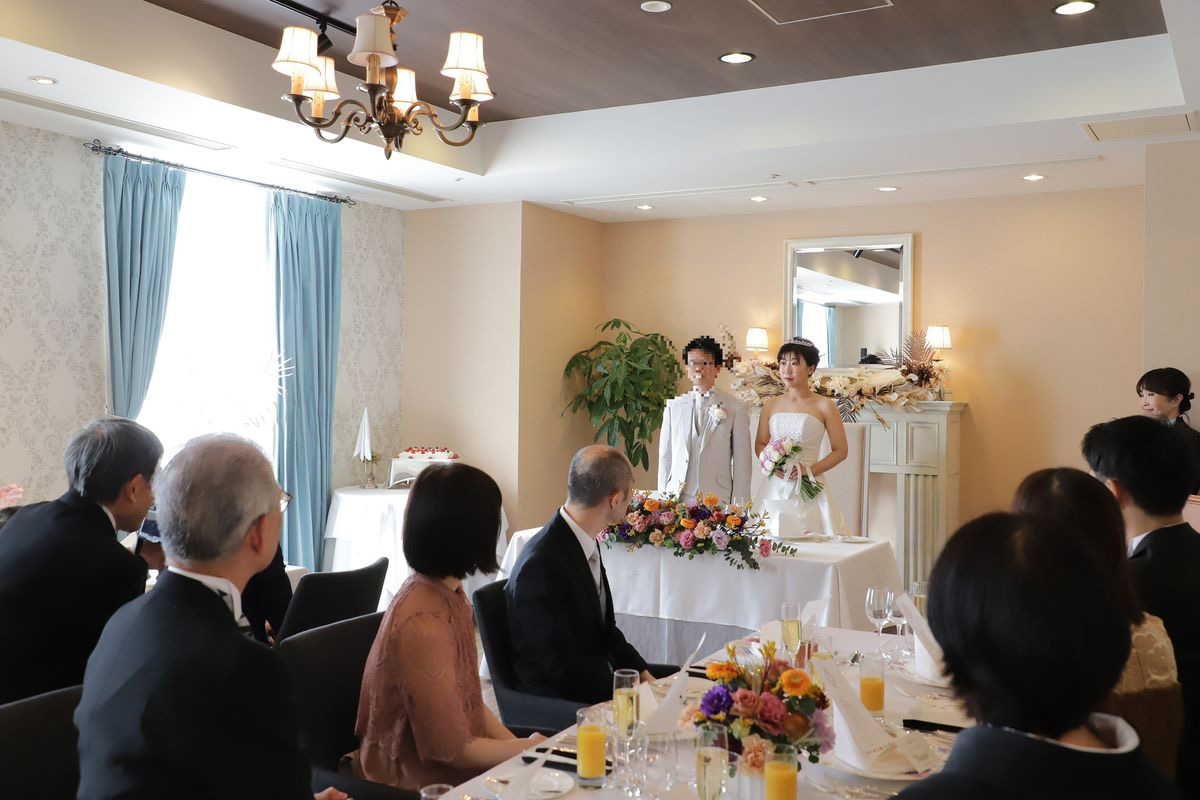 私たちは少人数の結婚式でしたが、エピソードクイズなども取り入れて盛り上がることができました。列席ゲストからは「お料理が美味しかった」「少人数でちょっと寂しくなるかと思っていたけど、思っていたより良かった」などの感想をもらえて嬉しかったです。また、席札にそれぞれの似顔絵を描いたのですが、列席の方が「似てるね!」と褒めて全部写真を撮ってくれていたことを聞き、感激しました。