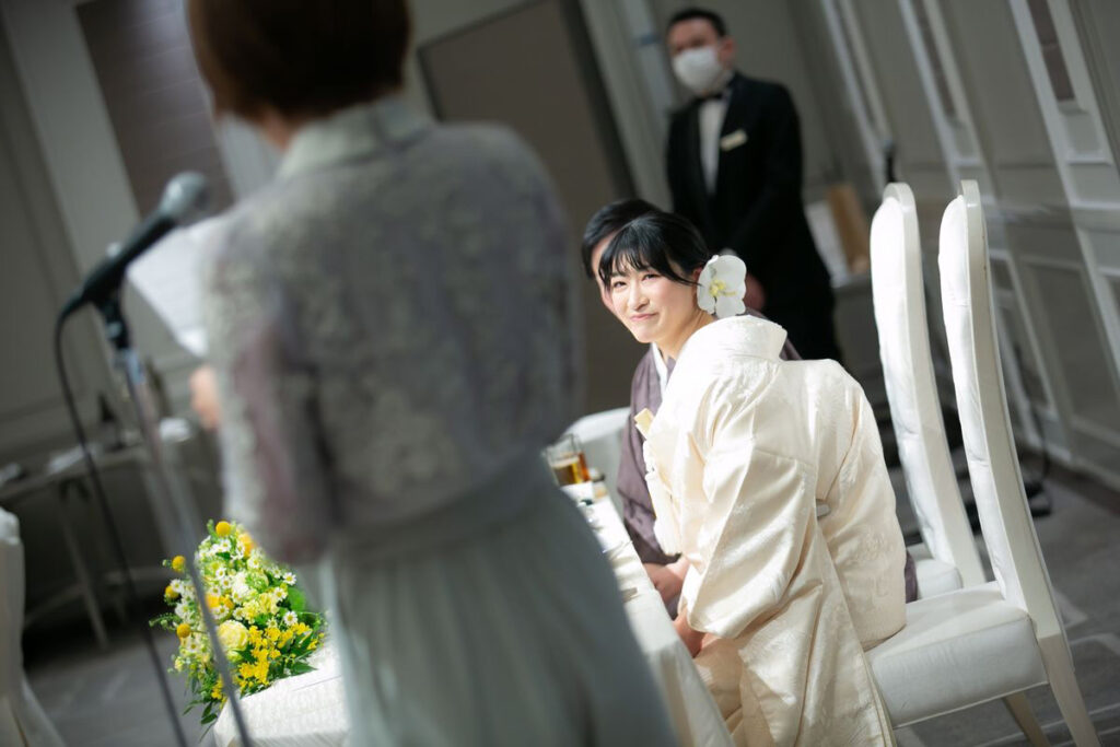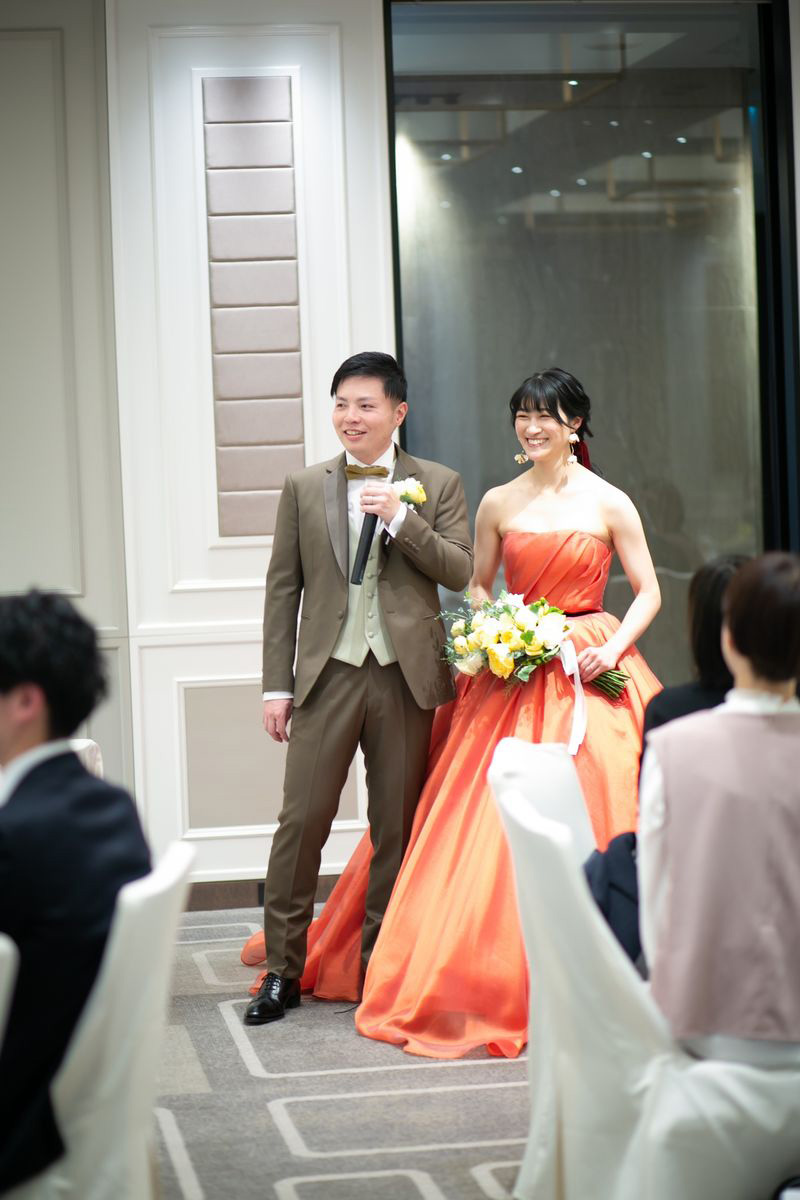 披露宴は、今までお世話になった方々に感謝を伝える場にしたいという思いが一番にありました。社会人になってからは、みんなで集まることが難しくなっていたので、私たちの結婚式が、久しぶりに集まって楽しい時間を過ごせる良い機会になればと考え、友人をたくさん招待しました。