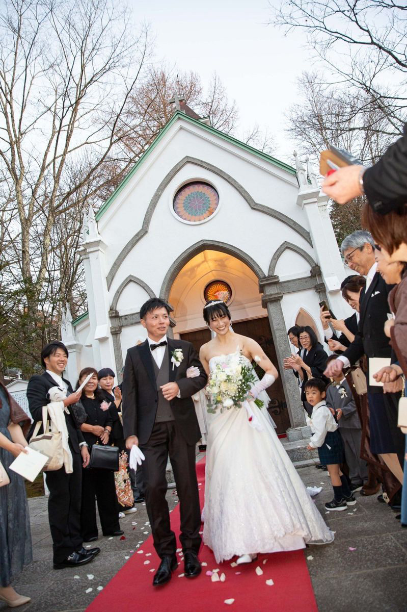 私たちは、挙式と披露宴を分けて実施しました。挙式は軽井沢の「旧軽井沢ホテル音羽ノ森」にて、親族のみでおこないました。『両親に感謝を伝える結婚式』になるようアットホームな雰囲気にこだわり、両家の親族にお互いを紹介しつつ、みんなで楽しい時間を過ごせて良かったです。