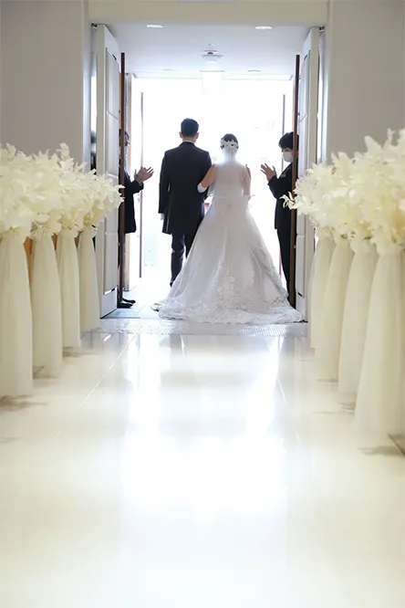 結婚式で一番感動したのは、挙式でチャペルの扉が開いて、大切な家族や大好きな友人の顔が一斉に見えた瞬間です。みんなが笑顔で自分のことを見てくれていることに、感激しました。