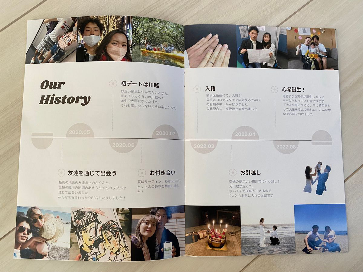 また、フラワーシャワーはネットなど、色々なところから購入したり、画用紙を切り抜いたり、自分達で用意しました。娘が寝た後、ふたりで文句を言いながら黙々と詰めたのも、良い思い出です(笑)。