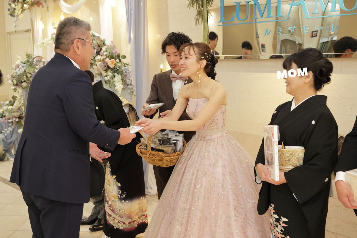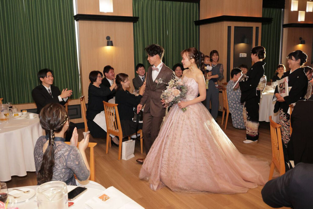 Lumiamore(ルミアモーレ)は、披露宴会場が広すぎず丁度いい広さなので、ビールラウンドをする際や入退場の時などに、ゲスト一人一人と目を合わせることができて、とても良かったです。