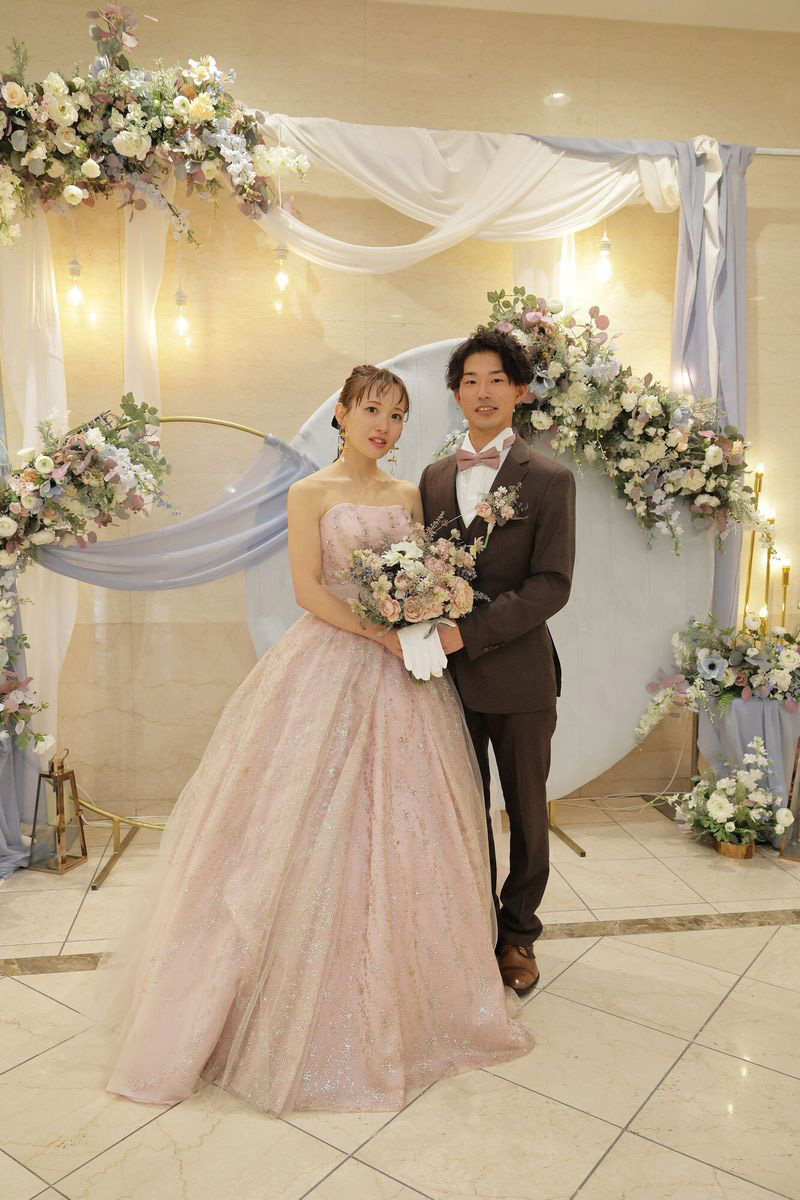 Lumiamore(ルミアモーレ)は、挙式会場・待合スペース・アフターセレモニーをする場所が全てワンフロアにあり、披露宴会場がウッド調で天井が低く、アットホームな雰囲気が気に入りました!「スマ婚」を利用したことで、打合せは全てオンラインで済み、持ち込みが全て無料なので、自由に、自分達らしい式が叶いました。