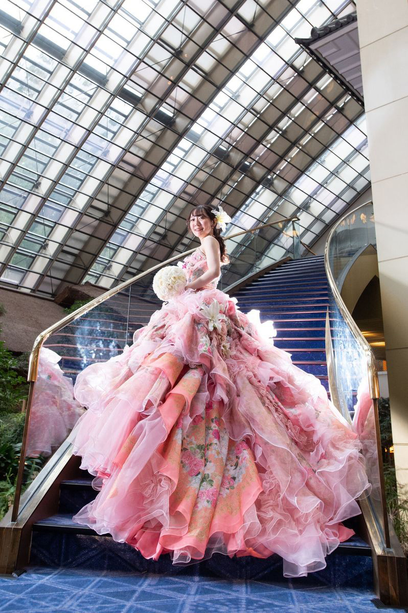 2着目は、憧れのブランド「stella de libero(ステラ デ リベロ)」で選んだピンクのドレスです。夢が叶ってすごく嬉しかったですし、ゲストにもたくさん褒めてもらえました!