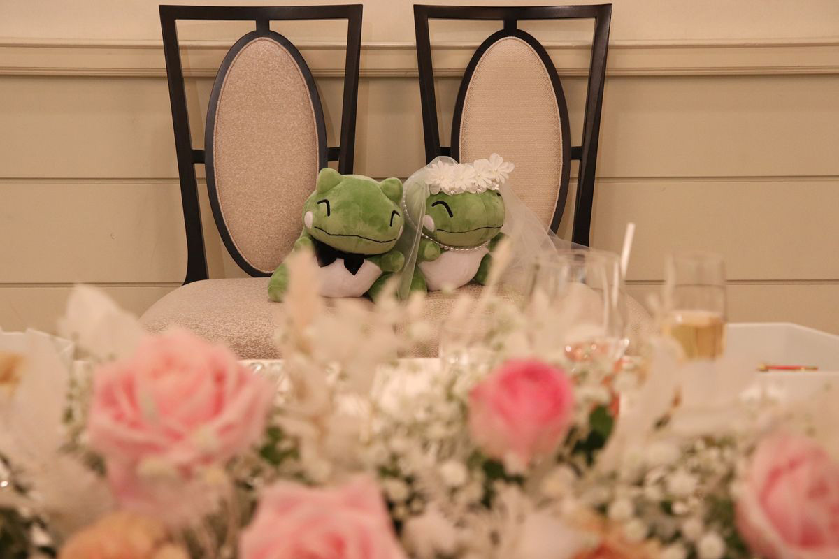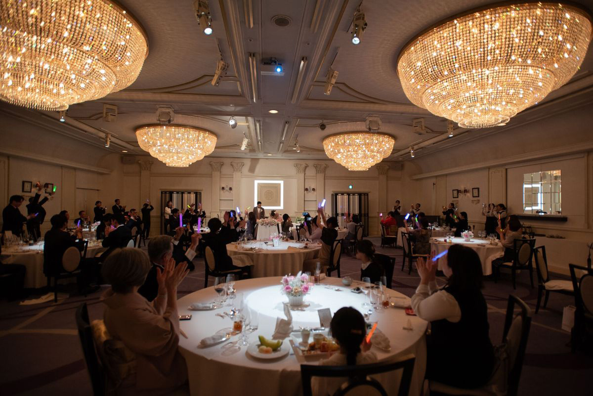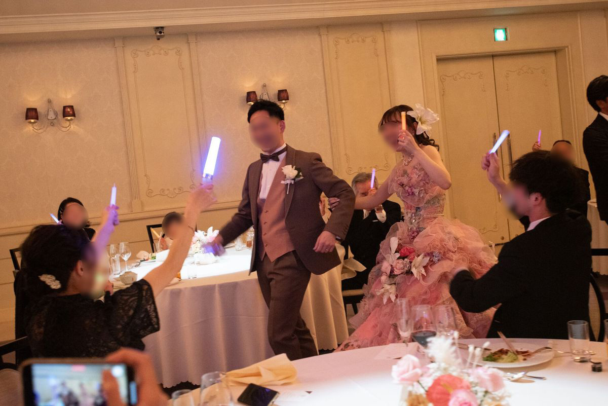 また、お色直し後の再入場の際、アイドルソングを流してゲストにサイリウムを振ってもらうという演出を取り入れたのですが、夫側のゲストにそのアイドルに詳しい方がいたので、何人かでMIXを打ったり、コールをしてくれたりして感激しました!演出のことは事前に伝えていないので、その場の即興だと思いますが、とても嬉しいサプライズとして一生の思い出になりました。