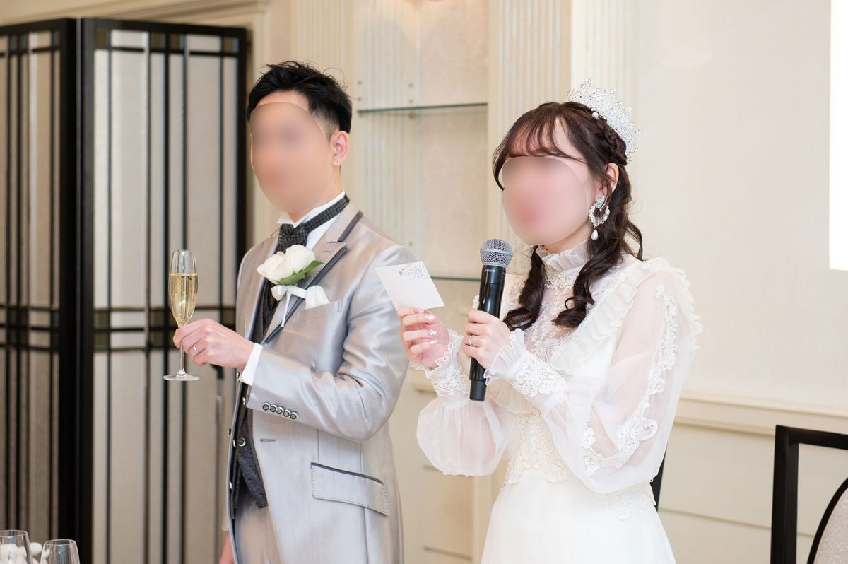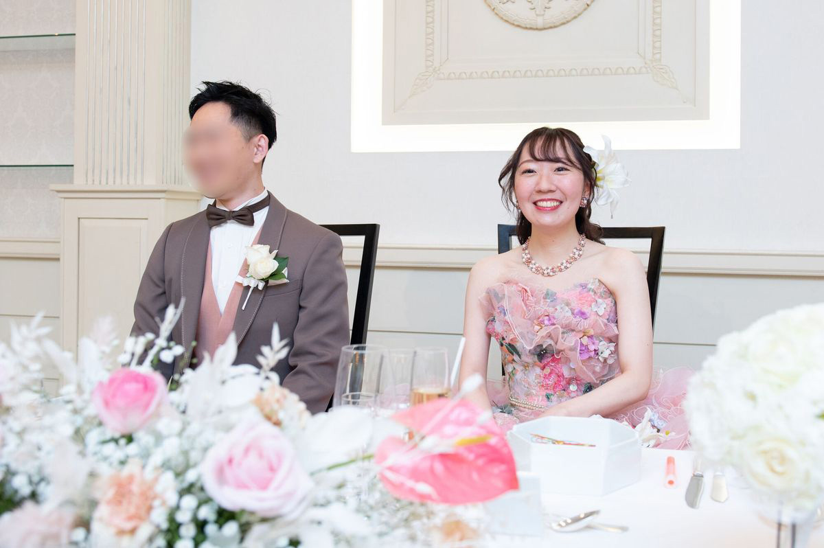 一番感動したのは、ゲストのキャンセルが誰一人なく、全員が出席し、笑顔でお祝いしてくれたことです。披露宴中は祝福の声やお褒めの言葉をかけてもらい、ゲストが楽しんだり喜んだりする様子を見られて、結婚式をやって本当に良かったと思いました。