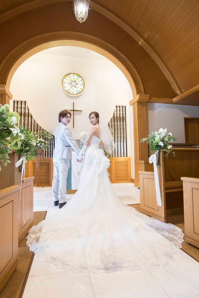 ホテルプラザ神戸のチャペルは、森の中にあるような可愛い雰囲気で、外に見える芝生や、景色が全て綺麗でした。披露宴で印象に残ったのは、再入場の際、隠し扉から入場し、みんなを驚かせたシーンです。また、お昼からの結婚式だったので、披露宴の中盤からは窓に神戸の夜景が綺麗に映り、とても素敵でした。